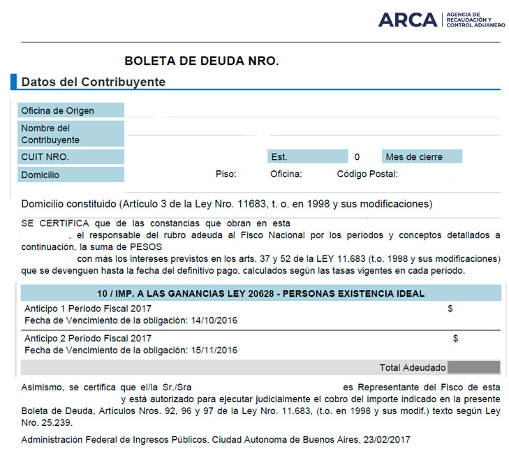 Modelo de boleta de deuda